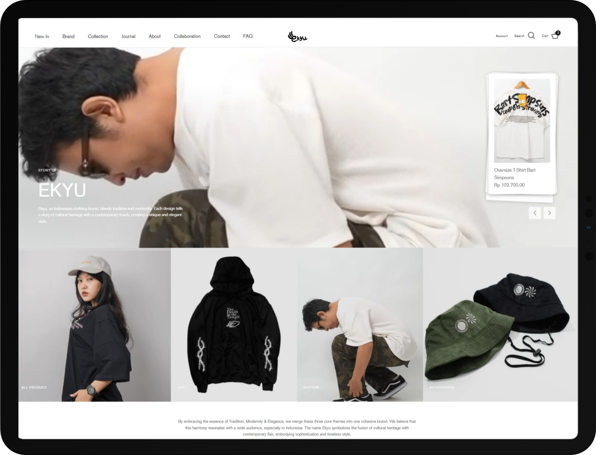 Kami merancang platform e-commerce yang memukau secara visual dan mudah dinavigasi, mencerminkan esensi brand fashion Ekyu. Lihat bagaimana desain kami membantu mereka sukses dalam penjualan online.